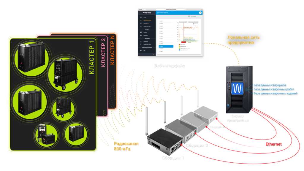 Программный продукт Weld Web позволяет строить «сети» из сварочных аппаратов и получать моментальные и интервальные показатели их работы.